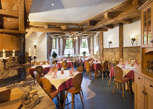 Hotelowa restauracja serwuje przede wszystkim dania kuchni tyrolskiej i włoskiej. Klienci mogą korzystać z bogatego bufetu sałatkowo-przystawkowego oraz samodzielnie komponować pierwsze i drugie danie – do dyspozycji gości pozostaje kilka wariantów obiadowych. Kolacje są urozmaicane pizzą. Okazjonalnie hotel organizuje dni kulinarne Południowego Tyrolu.